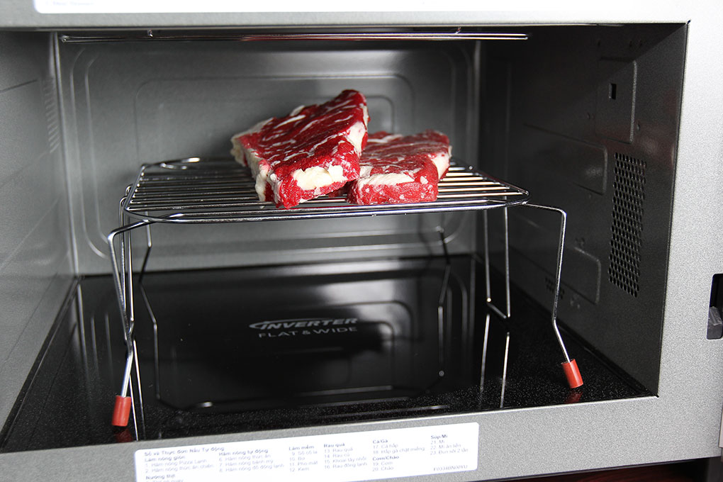 Nổi bật ở lò vi sóng Panasonic giá rẻ là chức năng vi sóng kết hợp với nướng, bạn có thể hoàn thành 2 giai đoạn nấu ăn cùng một lúc như: rã đông trước rồi nướng, hay nấu chín sau đó nướng, cho món ăn khi nướng xong chín, mềm mà vẫn giữ nguyên hương vị đặc trưng và chất dinh dưỡng.