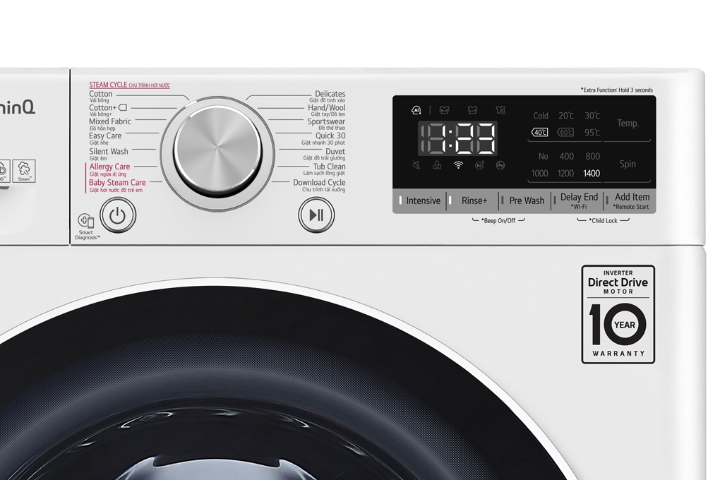 Chiếc máy giặt LG này còn nhanh chóng loại bỏ bụi bẩn, mạt bụi trong khi giặt, hiệu quả đến 99.9%, bảo vệ gia đình bạn khỏi các triệu chứng dị ứng hoặc các vấn đề về hô hấp. Công nghệ giặt hơi nước LG Steam còn khiến quần áo ít bị nhăn hơn sau khi giặt.