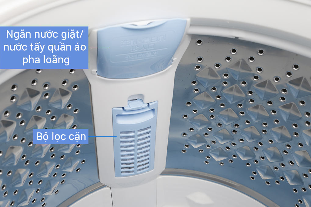 + Lồng giặt ngôi sao pha lê: Với thiết kế thành lồng giặt có gờ nổi, mang đến sự chà xát làm sạch áo quần hiệu quả hơn.