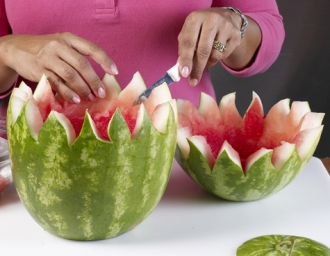 Tỉa dưa hấu thành giỏ hoa đựng salad đẹp mắt