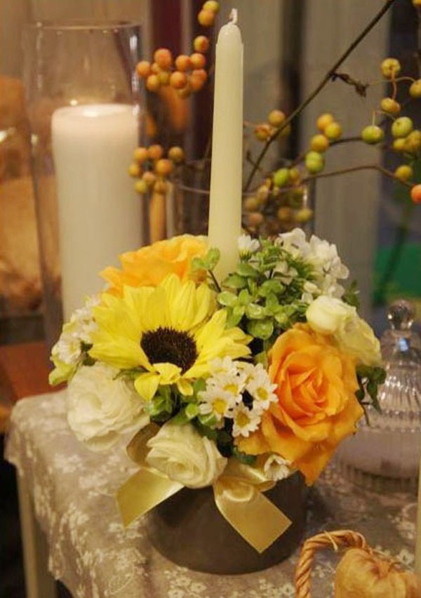 Cắm hoa với nến đơn giản tinh tế lãng mạn