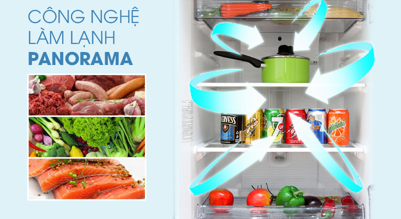 Tủ lạnh Panasonic NR-BL267PSVN còn được trang bị công nghệ làm lạnh Panorama hiện đại giúp luồng khí lạnh được thổi mạnh mẽ đến mọi ngõ ngách trong ngăn đông của tủ, đảm bảo khí lạnh luôn đầy đủ và đồng đều.
