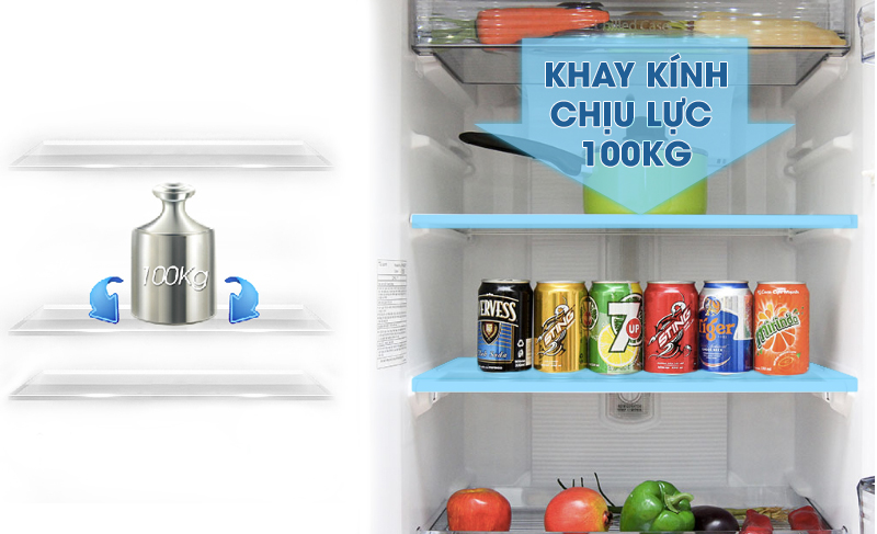 Tủ lạnh sở hữu một hệ thống khay kệ thông minh, đa dạng cho nhiều nhu cầu sử dụng. Với chất liệu khay kệ bằng kính chịu lực, bạn có thể thoải mái đặt để thực phẩm trong tủ mà không sợ cong, vênh hay nứt, vỡ.