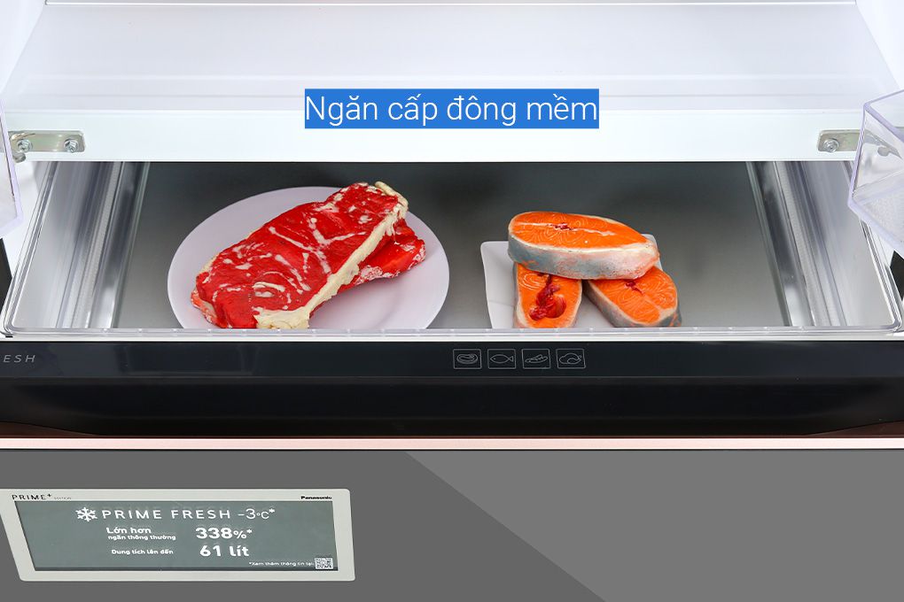 Tủ lạnh Panasonic NR-YW590YMMV được trang bị công nghệ cấp đông mềm Prime Fresh+ tiên tiến giúp bảo quản thực phẩm ở nhiệt độ -3 độ C giúp bảo quản thực phẩm tươi ngon lên đến 7 ngày, hơn những thế với ngăn cấp đông mềm này bạn không cần phải rã đông khi chế biến thực phẩm.