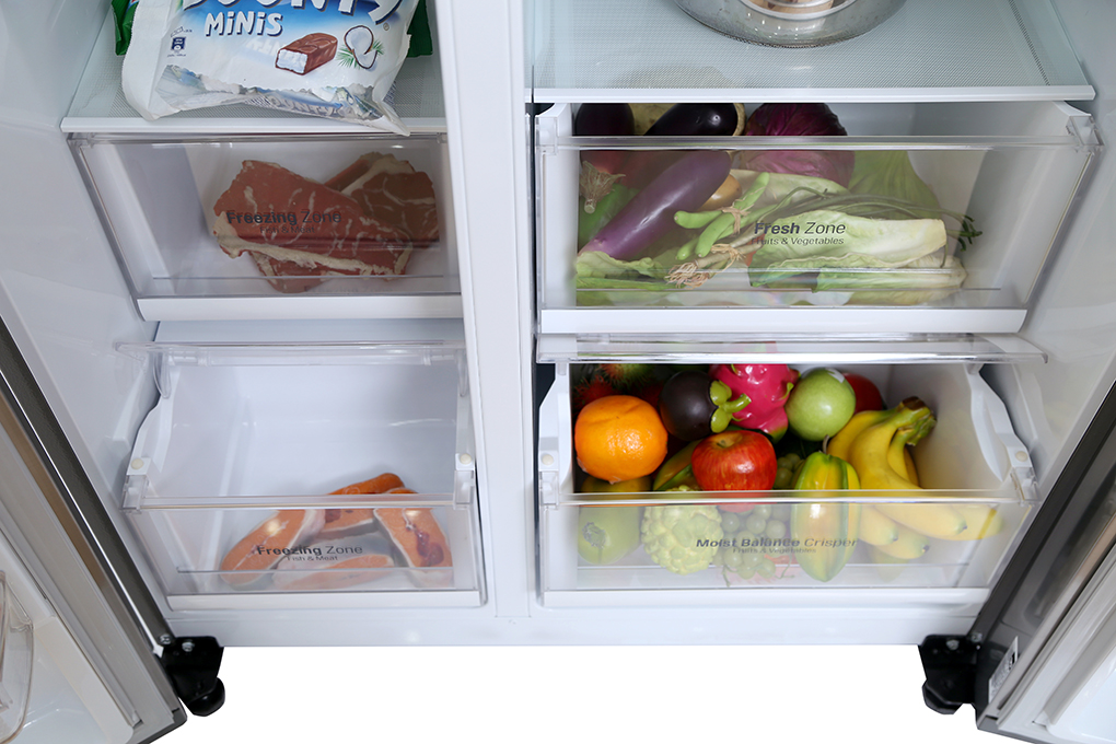 Tủ lạnh LG 626 lít này được trang bị ngăn rau củ với lưới mắt cáo độc quyền từ LG cho phép duy trì sự cân bằng độ ẩm lý tưởng. Độ ẩm dư thừa sau khi thoát ra từ thực phẩm sẽ được giữ lại tại lưới mắt cáo thay vì đọng xung quanh.